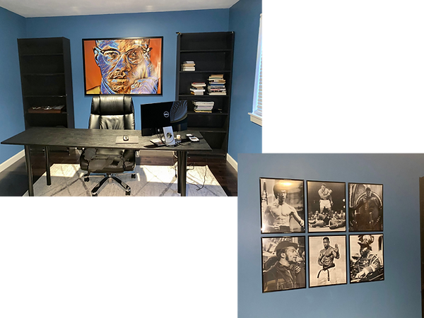 This compact home office was redesigned to feel bold, expressive, and grounded in purpose. The goal was to create a more intentional layout, with each design detail reinforcing focus, pride, and presence.